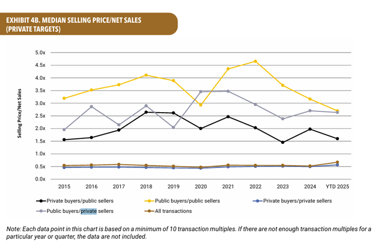 And finally, what this graph tells you is that the public markets have historically valued public businesses more highly than private ones (although not that highly based on fundamentals). And public buyers who can presumably issue paper as well as paying cash for a business, are also willing to place a premium on their private company targets. However there are signs that there is a convergence between private and public transactions which might be a theme worth monitoring.